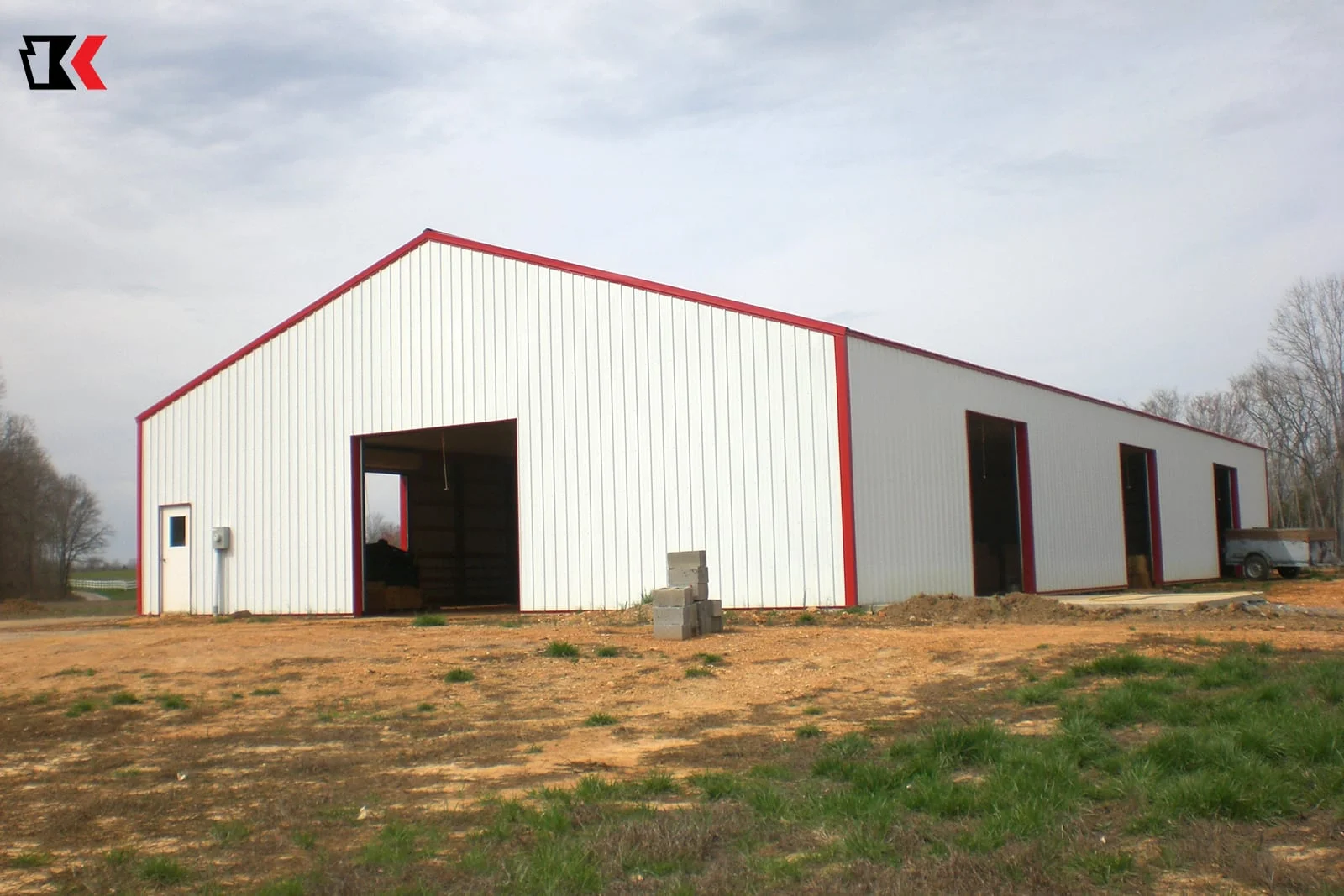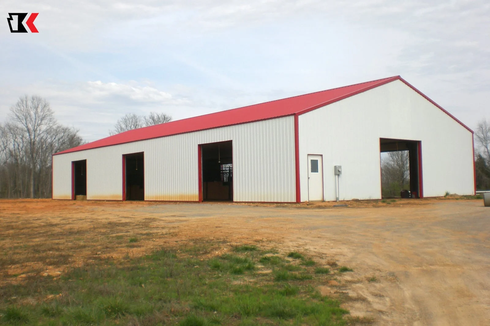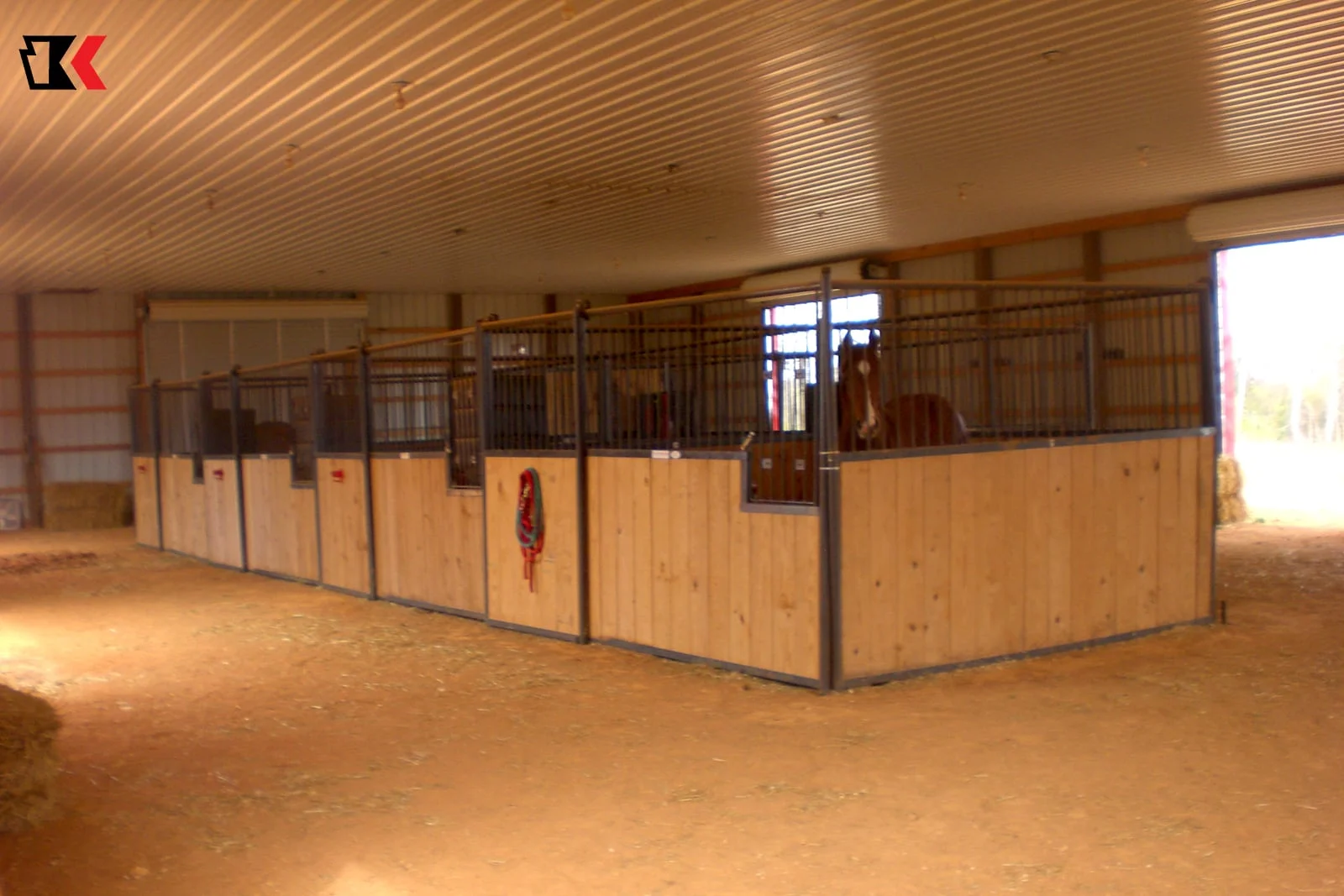 This open, spacious warehouse style shop houses 4 hourse stalls with multiple entry points for easy access and good airflow for livestock.