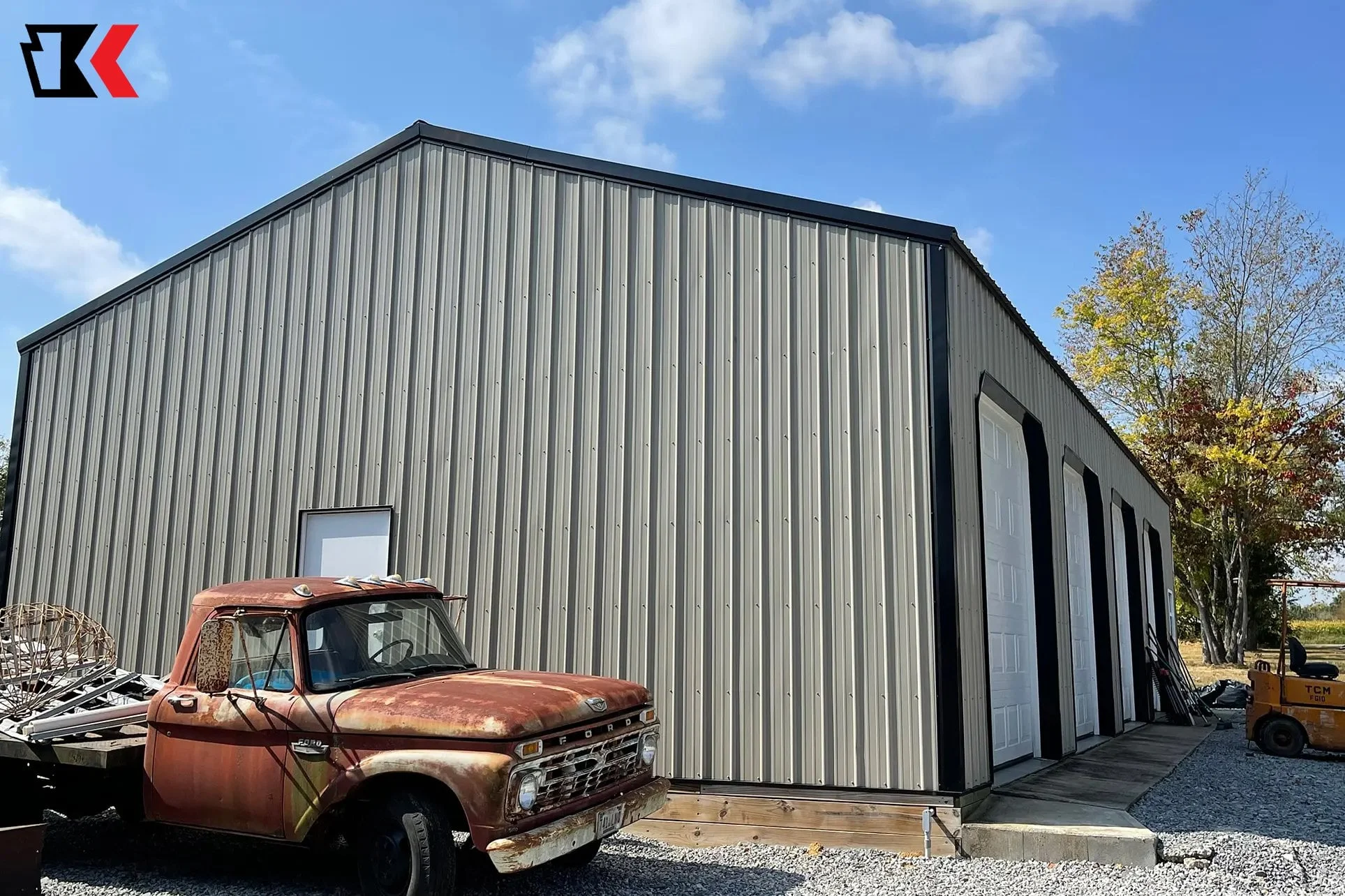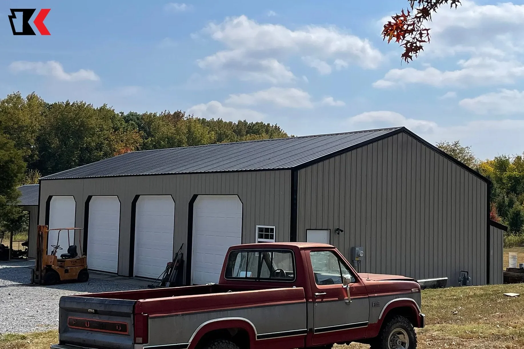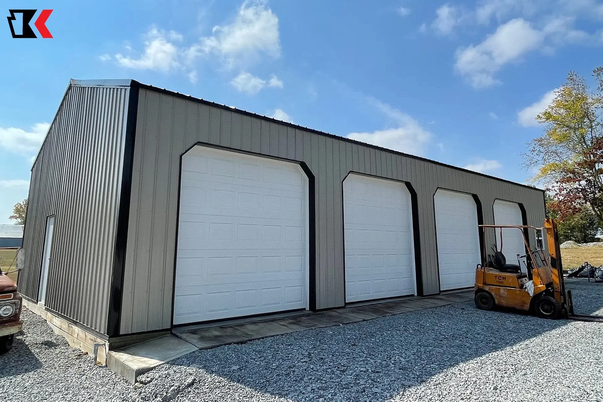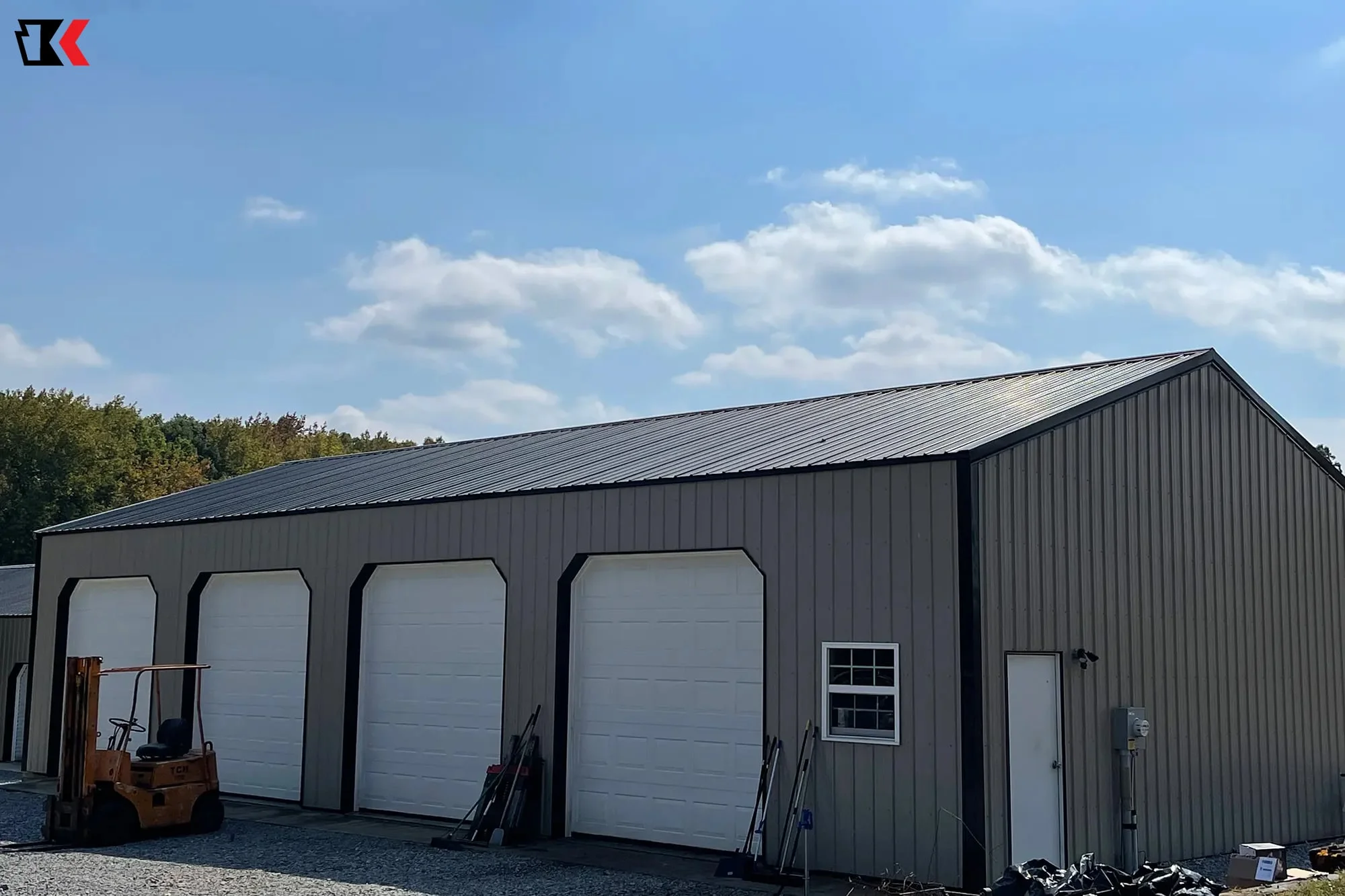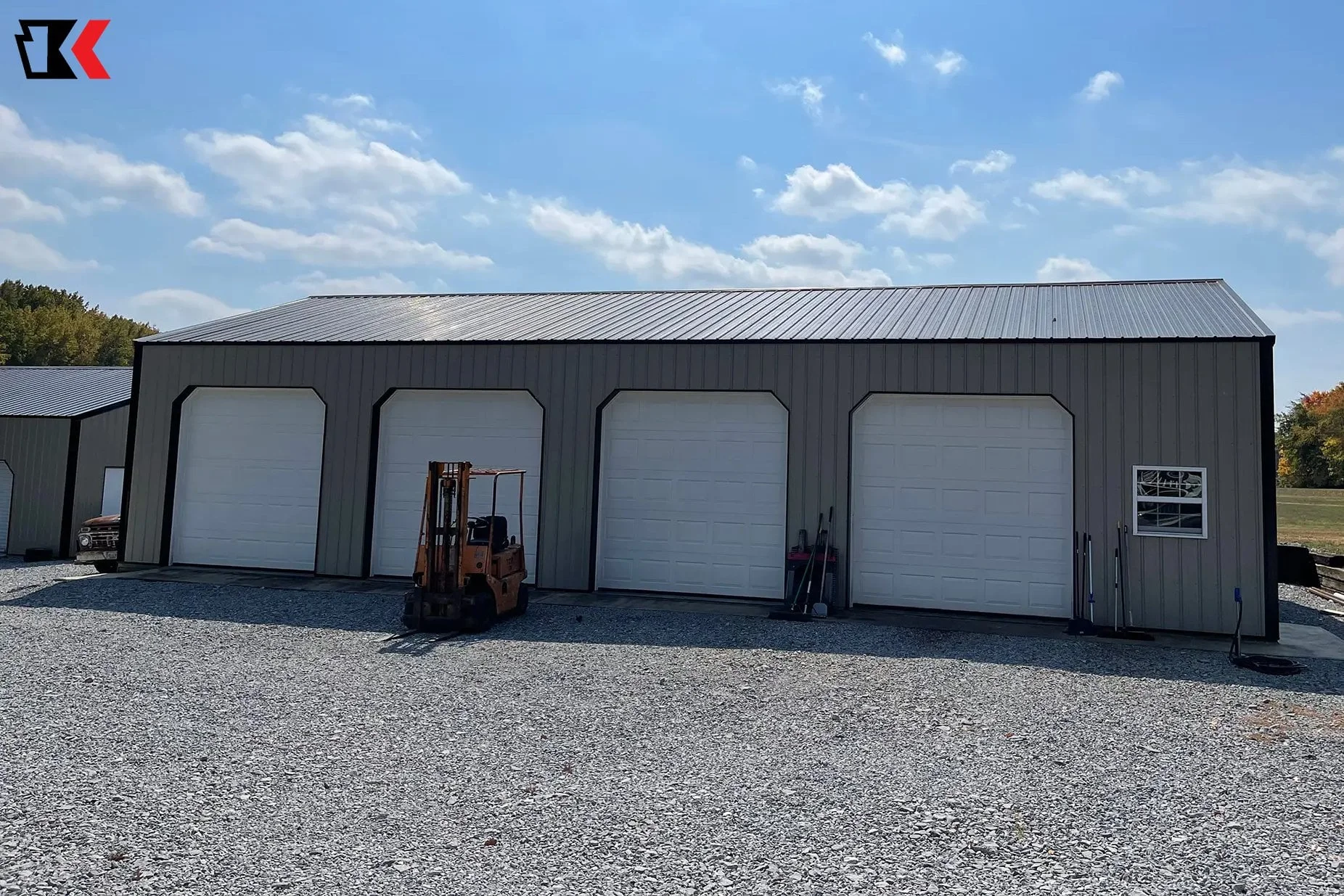 This large 4 stall garage offers lots of space for tractors, machinery, and other equipment with easy access through multiple doors, while offering protection from the elements on all sides.