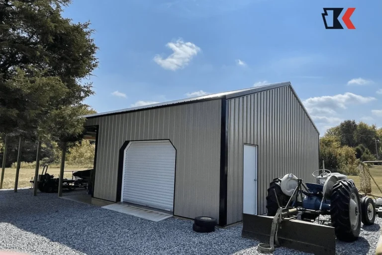This large bronze trimmed machine shed is tall enough to store all your machine/equipment. Two windows in the back allow for good airflow and natural sunlight.