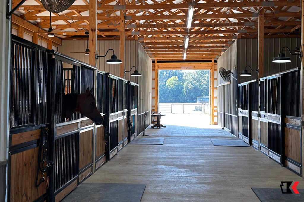 If you work with horses for a living or enjoy having them as a hobby, you understand how important it is to have the right building for them. With equestrian post-frame construction, we build horse barns, riding arenas, stables, horse stalls, and more. Whether you are looking to protect your animals from the elements, have a place to store equipment and feed, or have a place to ride or train them, we can find the right building that is not only functional but looks beautiful and meets your needs.